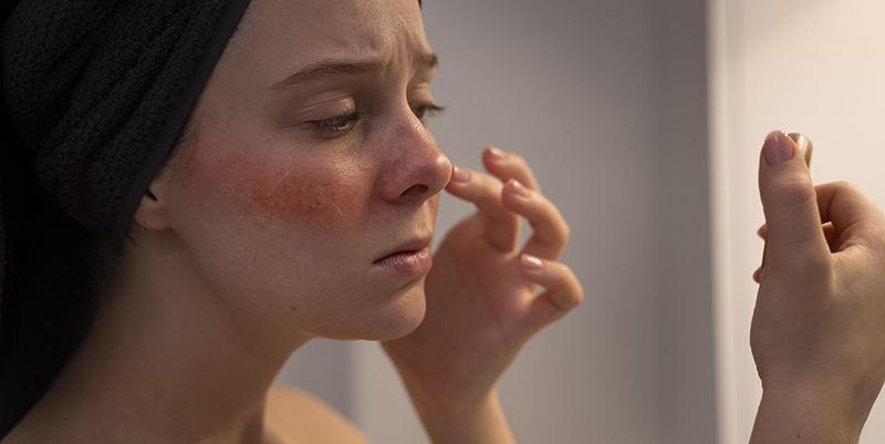 - Усиление трансэпидермальной потери воды (TEWL). Это процесс, при котором влага, поступающая из сосудистого русла в кожу, испаряется через поврежденный барьер. В результате кожа теряет свою способность удерживать влагу, что приводит к ощущению сухости и стянутости [5].